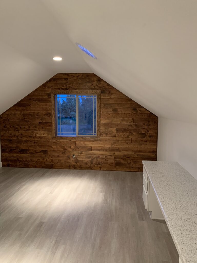 Here we created extra living space by remodeling the attic area to be a spacious and comfortable guest room.
